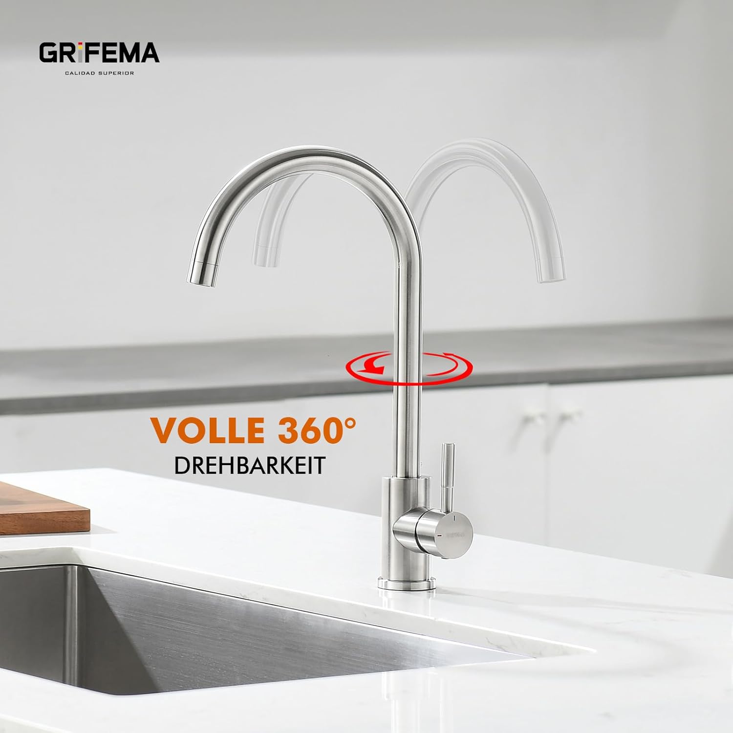 - HOHE QUALITÄT-- Edelstahl+Gebürstet, 100 Prozent bleifrei. Einhebelmischer küche sorgen Sie für gesundes Wasser und lange Lebensdauer