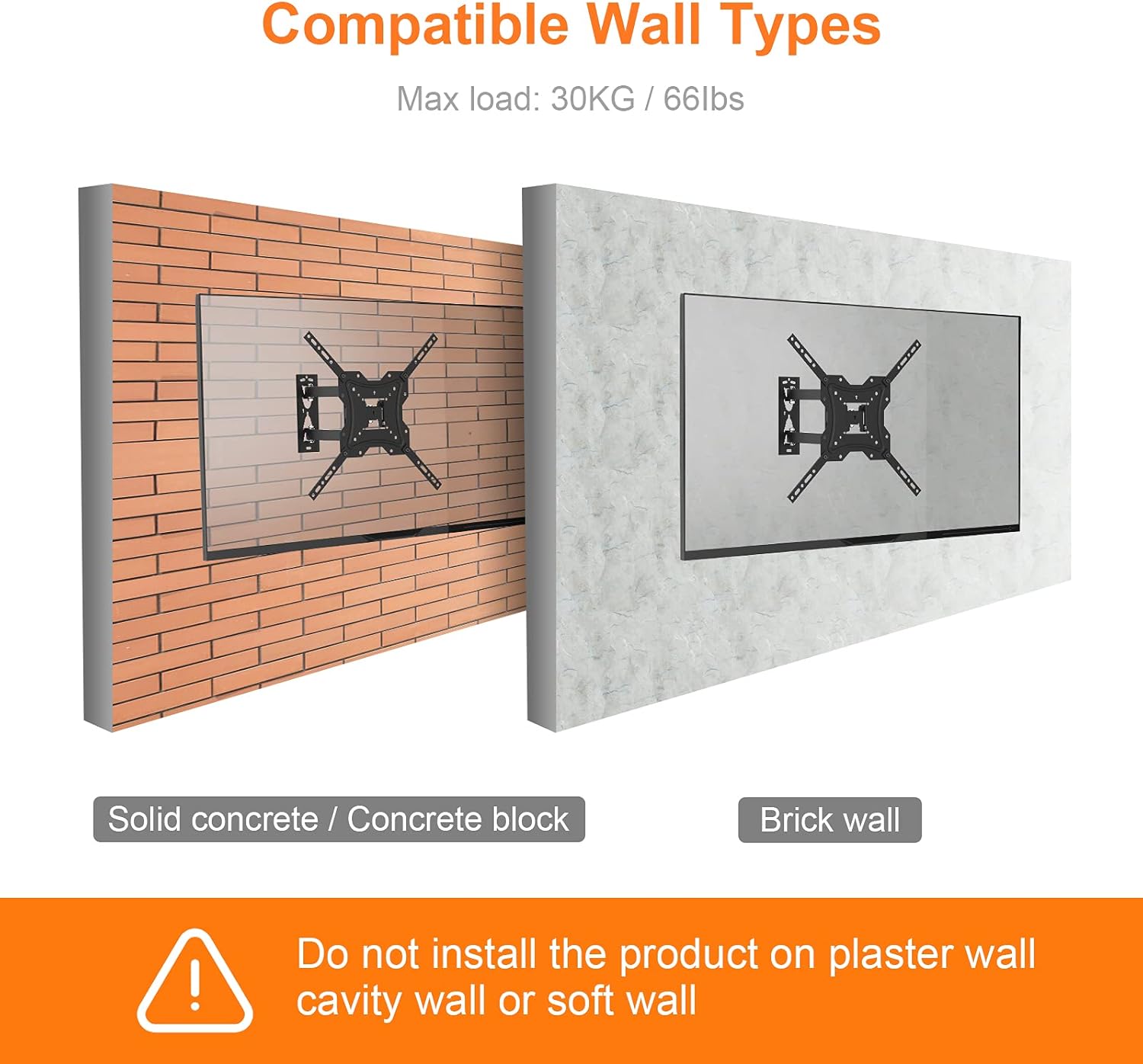 - UNIVERSALGRÖssE-- Fernsehhalterung geeignet für 26-55 Zoll Flach & Curved TV bis zu 36kg(Universale: Samsung, LG, Sony usw.). Kompatibel VESA: Max 400x400mm.