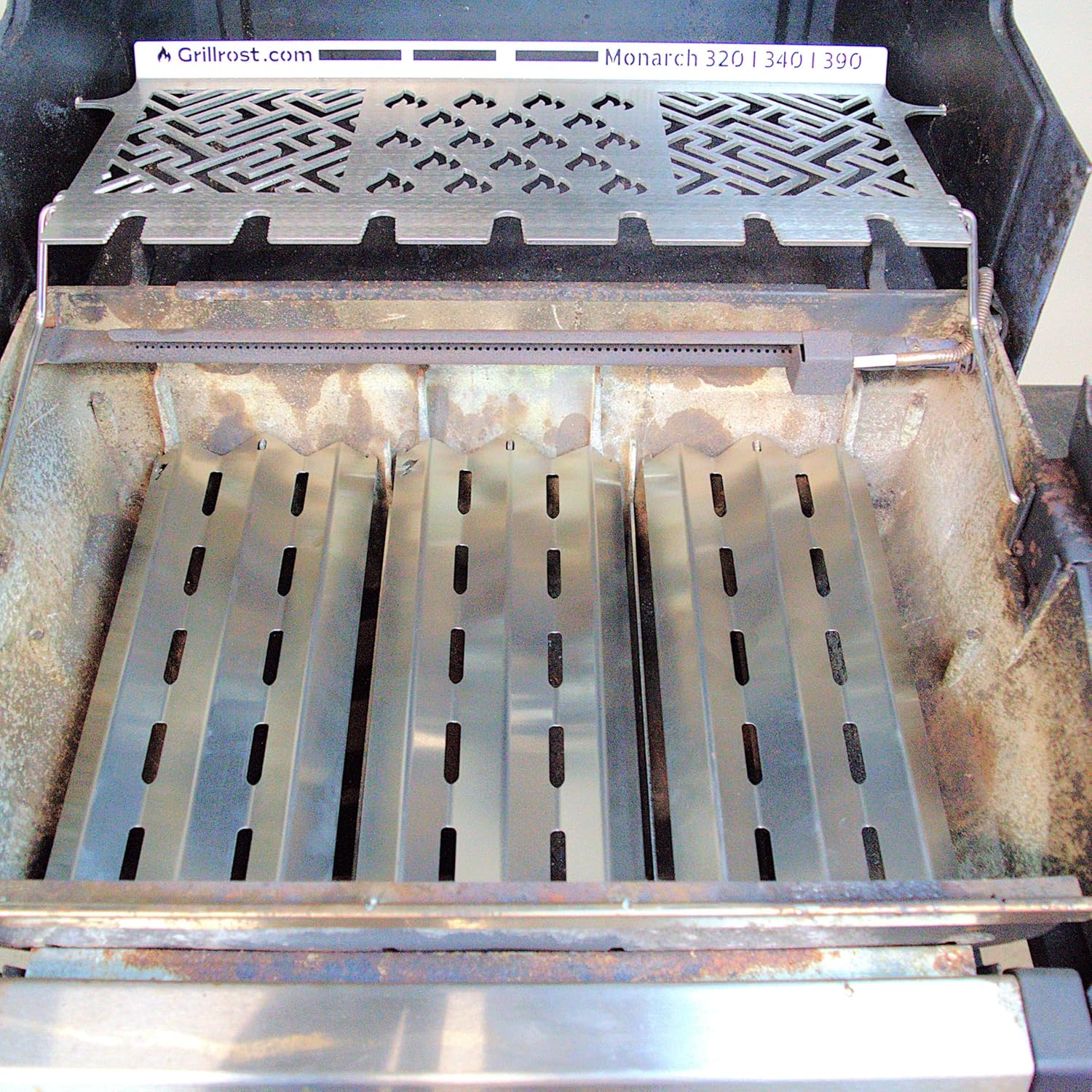 - VERBESSERTE HITZEFÜHRUNG: Die Brennerabdeckung sorgt für eine gleichmässige Wärmeverteilung im Grillbereich - für bessere Ergebnisse bei geringerem Gasverbrauch!