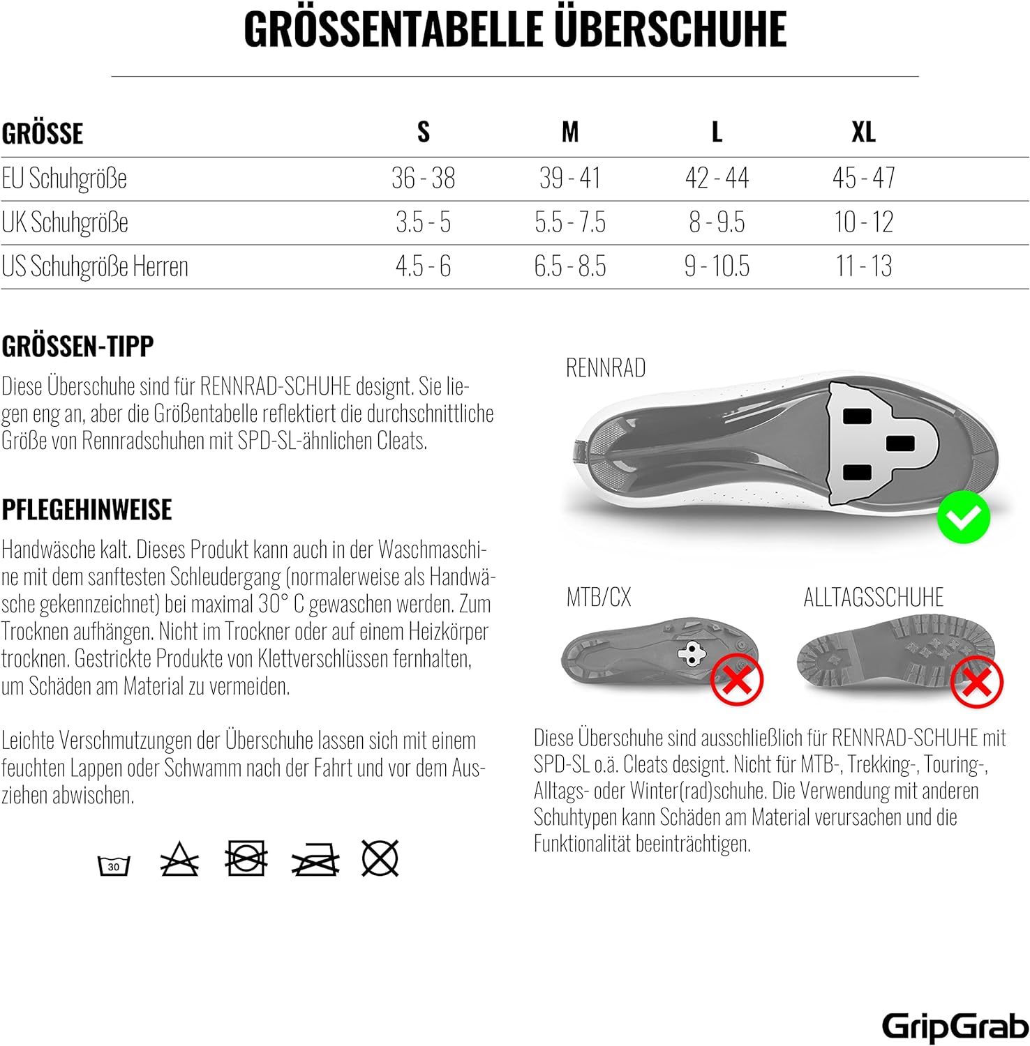 - Rutschfester Sitz - Silikongripper im Inneren halten den Überschuh an Ort und Stelle; Besonders beanspruchte Stellen an der Sohle sowie die Aussparungen für Cleats und Ferse sind verstärkt