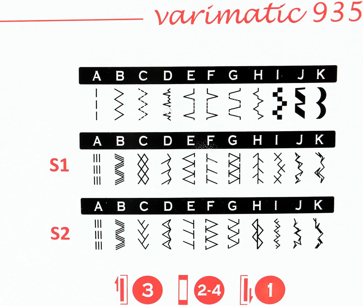 - 32 Nähprogramme; z.B. Gerad- und Zickzackstich, elastischer Blindstich, Dessousstich, Stretch- Gerad- und Zickzacknaht, Überwendlingstich, Wabenstich, Spezial Overlockstich, Overlockstich (geschlossen und offen), Federstich, Fugenstich
