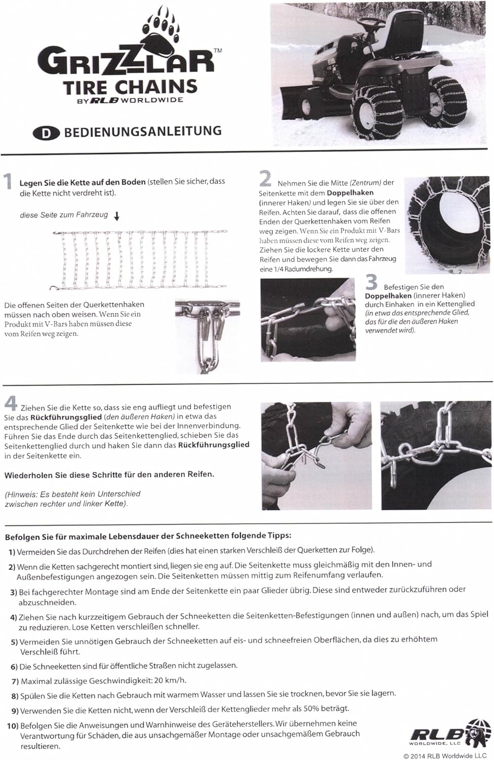 - Diese Schneeketten sind nicht für Reifen mit sehr aggressivem Profil geeignet. Bitte benutzen Sie Netzketten (GTN-500 Serie) dafür.