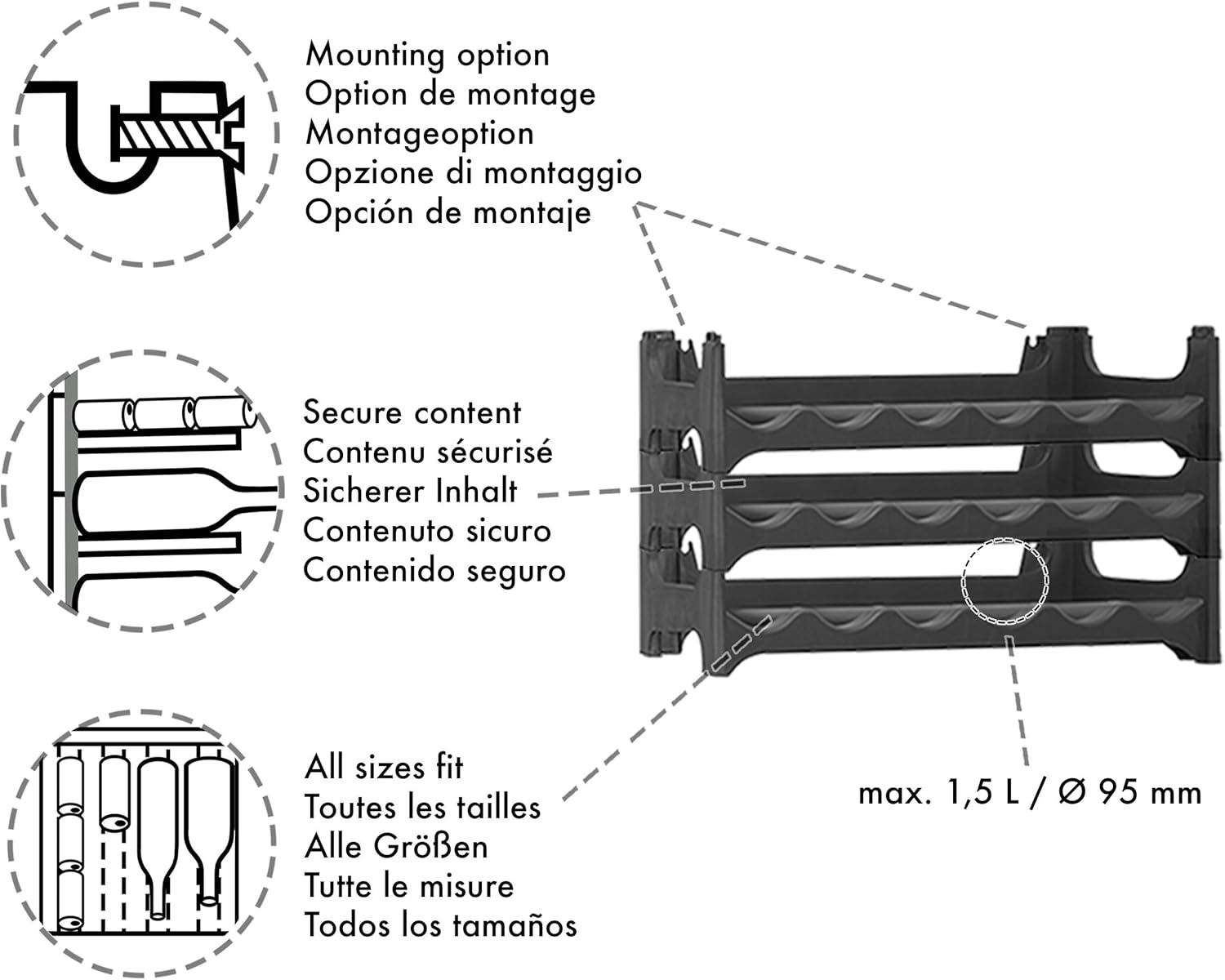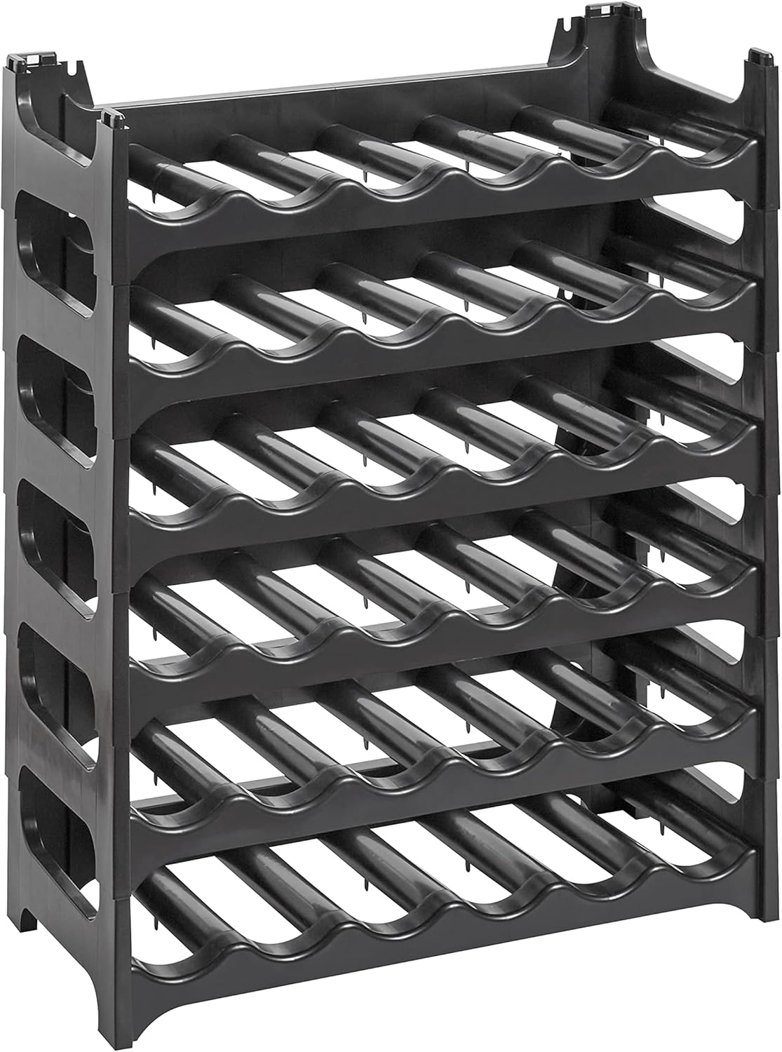 - LIEFERUMFANG - 1x Flaschenregal stapelbar in anthrazit bestehend aus 6 Kunststoff Elementen, welche Platz für jeweils 6 grosse Flaschen haben. So können Sie bis zu 36 grosse Flaschen geschickt in Ihrer Küche oder Speisekammer organisieren. Natürlich