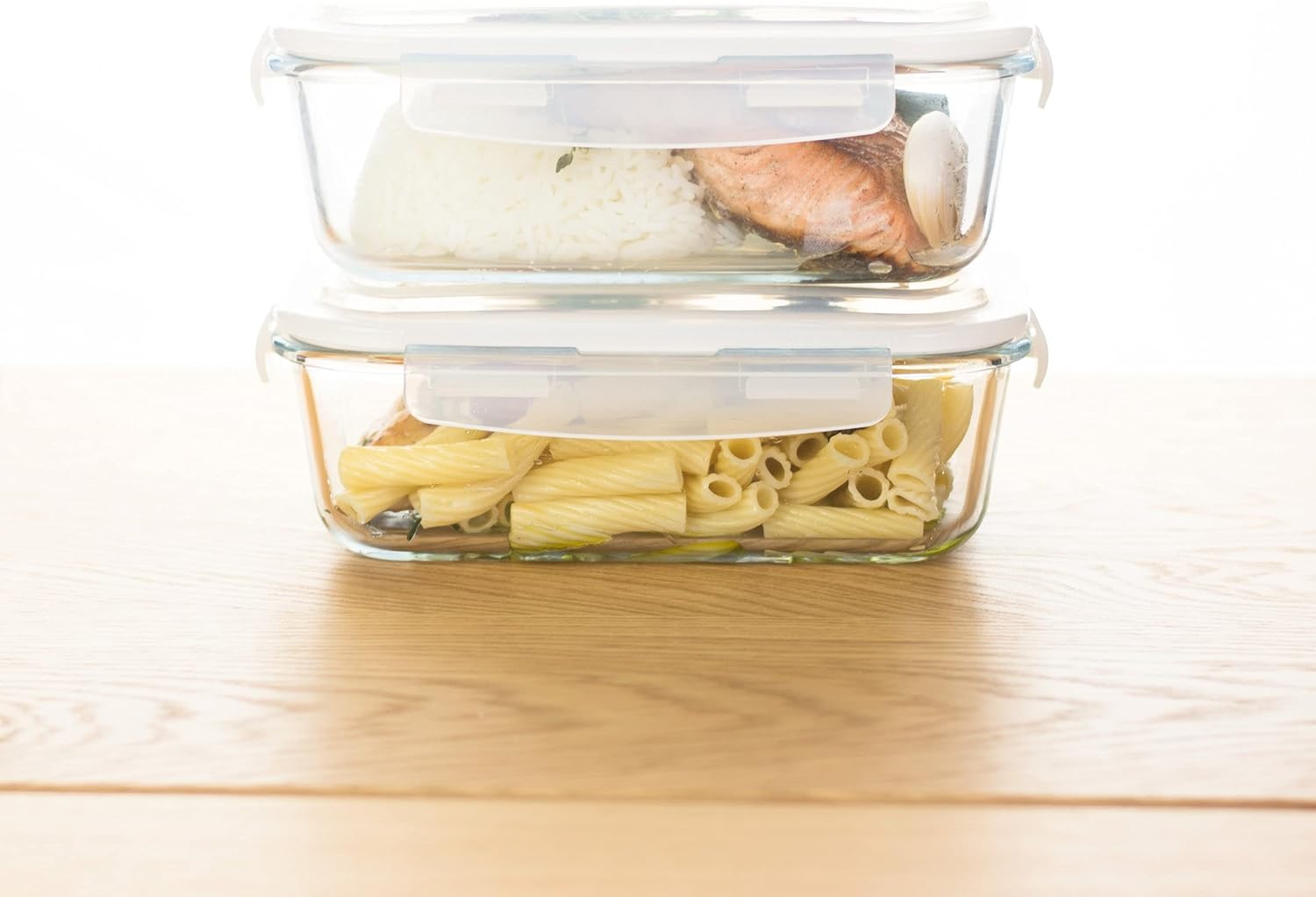- Set aus 2 rechteckigen Glasdosen (4 Teile ) mit einem Fassungsvermögen von je 1520 Millilitern - Die Schalen lassen sich als Auflauf - Gefrier - Frischhalte oder Mikrowellen - Schüsseln verwenden