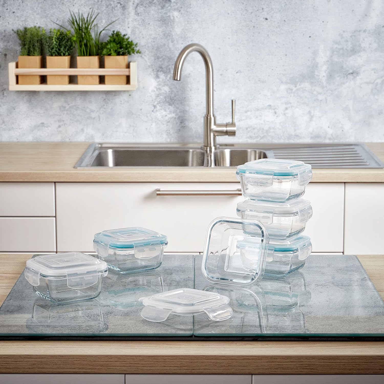 - Glasbehälter stapelbar - perfekt als Geschirr oder Dose für die Aufbewahrung von Lebensmitteln und BPA frei für Kinder - und Babynahrung. Aussenmasse jeder Glasbox betragen: 11,5 x 11,5 x 5 cm