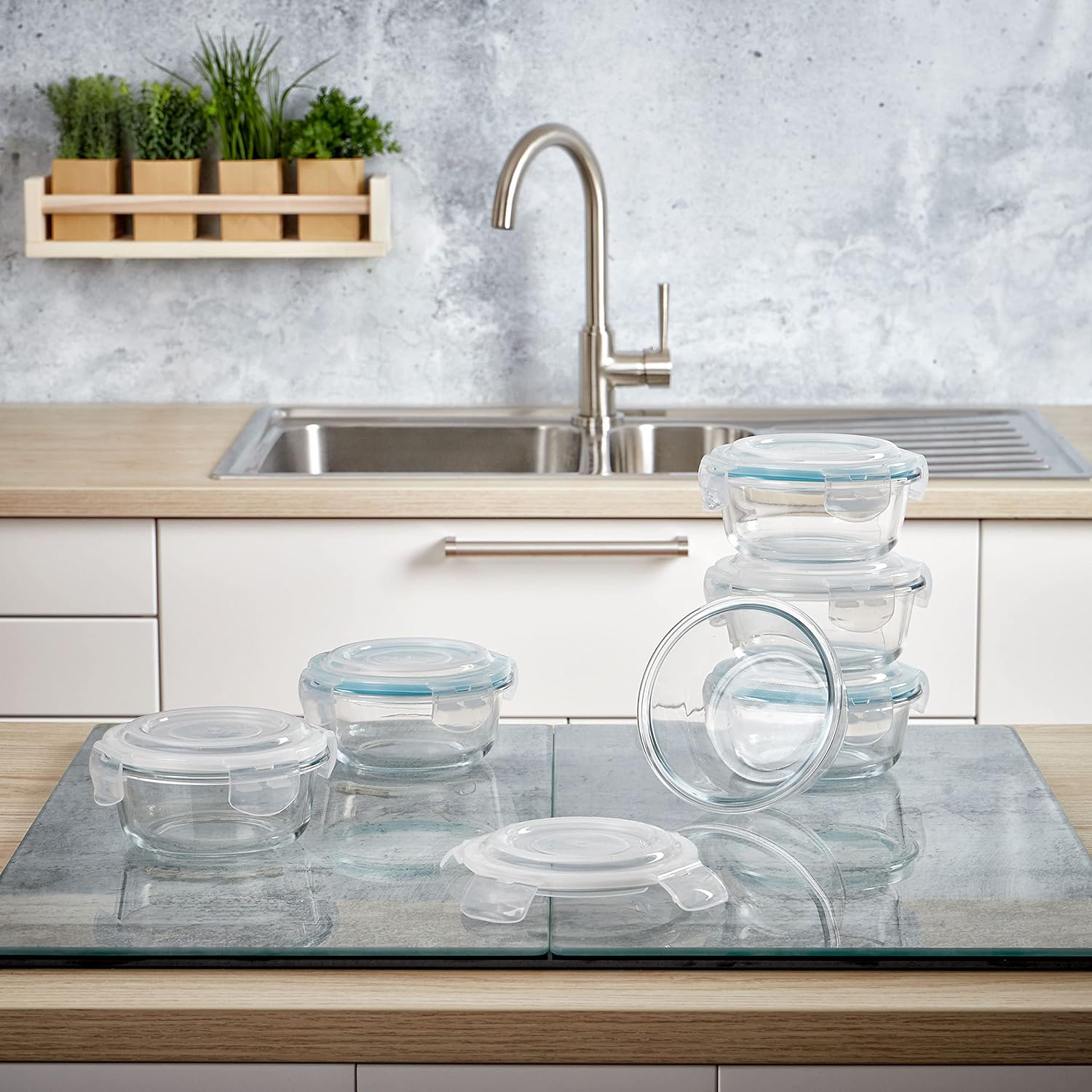 - Set aus 6 runden Glasdosen (12 Teile ) mit einem Fassungsvermögen von je 400 Millilitern - Die Schalen lassen sich als Auflauf - Gefrier - Frischhalte oder Mikrowellen - Schüsseln verwenden