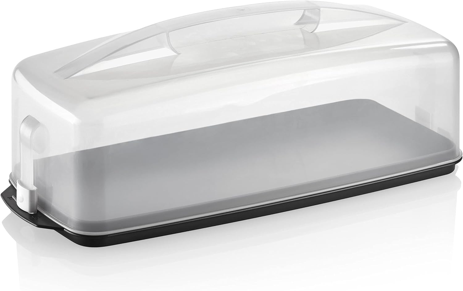 Grizzly Kuchen-Transportbox rechteckig mit klick-Verschluss, 15 x 43 x 18 cm, Kuchenbehälter rechtec