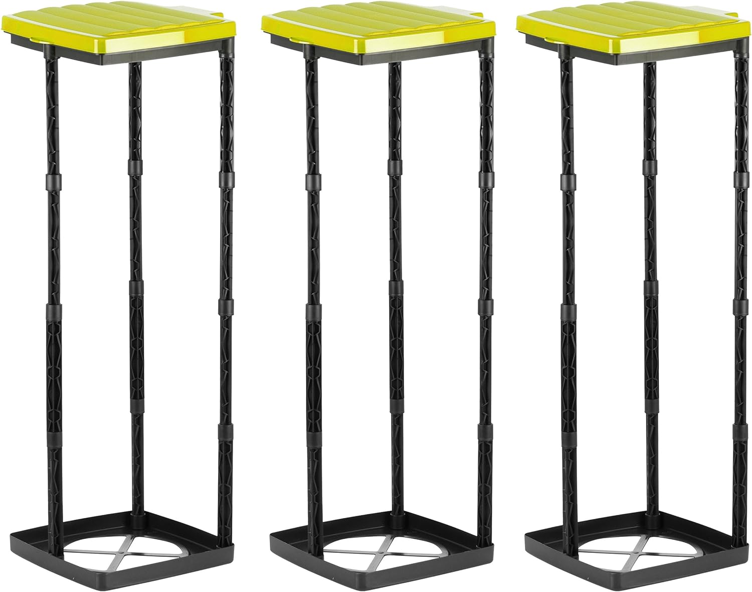 - PRODUKTABMESSUNGEN - 32,5 x 28,5 x 6 cm, Höhe variierbar von 47cm bis 87cm, 762 Gramm Leergewicht, für Müllbeutel von 25 Liter, 60 Liter oder 120 Liter, Farbe: gelb, Anzahl: 3, Material: Kunststoff, Made in Germany