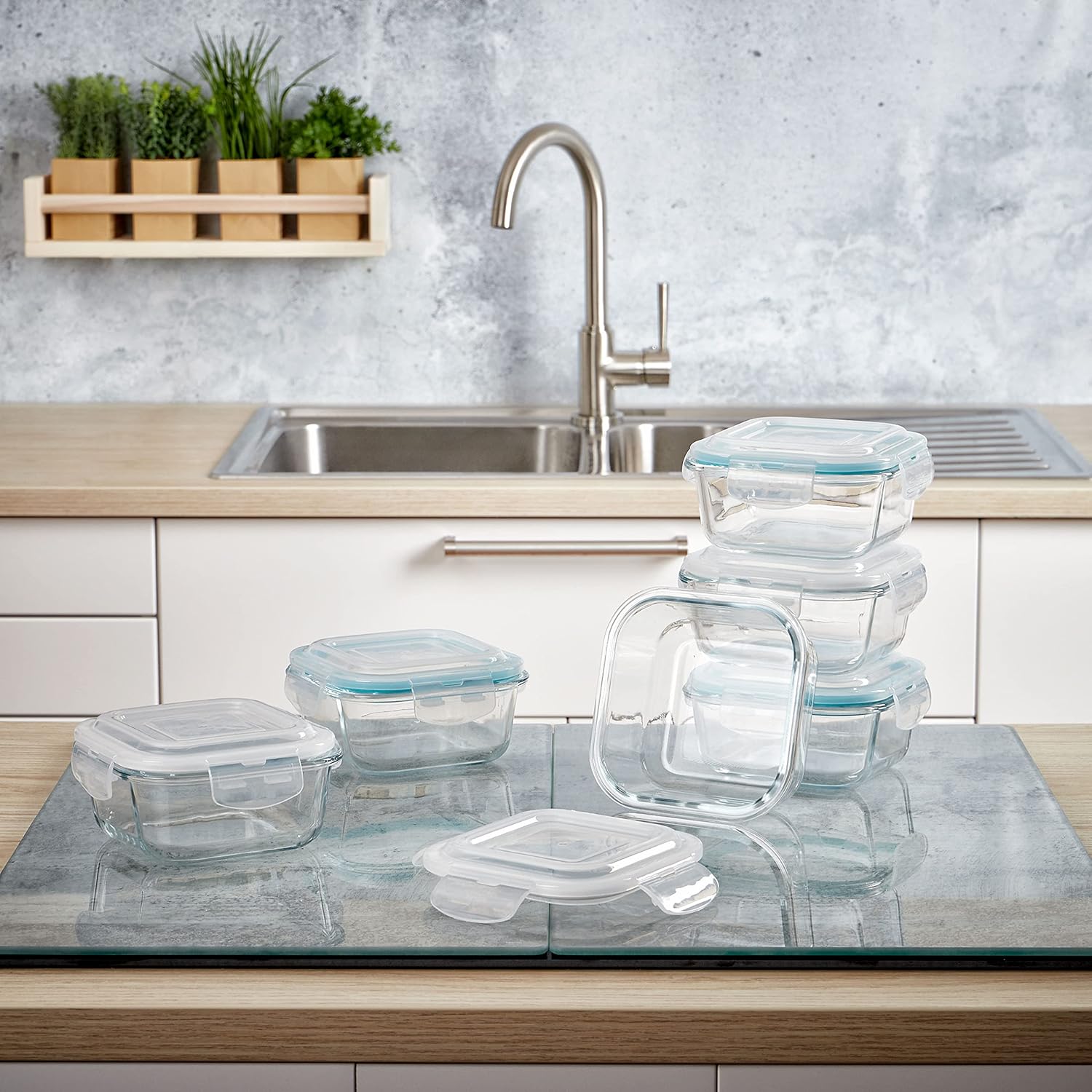 • Glasbehälter stapelbar - perfekt als Geschirr oder Dose für die Aufbewahrung von Lebensmitteln und BPA frei für Kinder - und Babynahrung. Aussenmasse jeder Glasbox betragen: 13,5 x 13,5 x 5,5 cm
