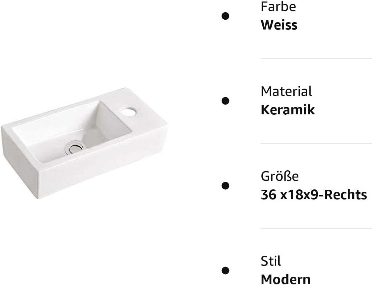 - passende Armatur (www.amazon.de/dp/B01DQZ5INO) oder Kaltwasserventil (www.amazon.de/dp/B01DQZ5INO) und Ablaufgarnitur (ASIN B0722SL52T) im Lieferumfang nicht beinhaltet.
