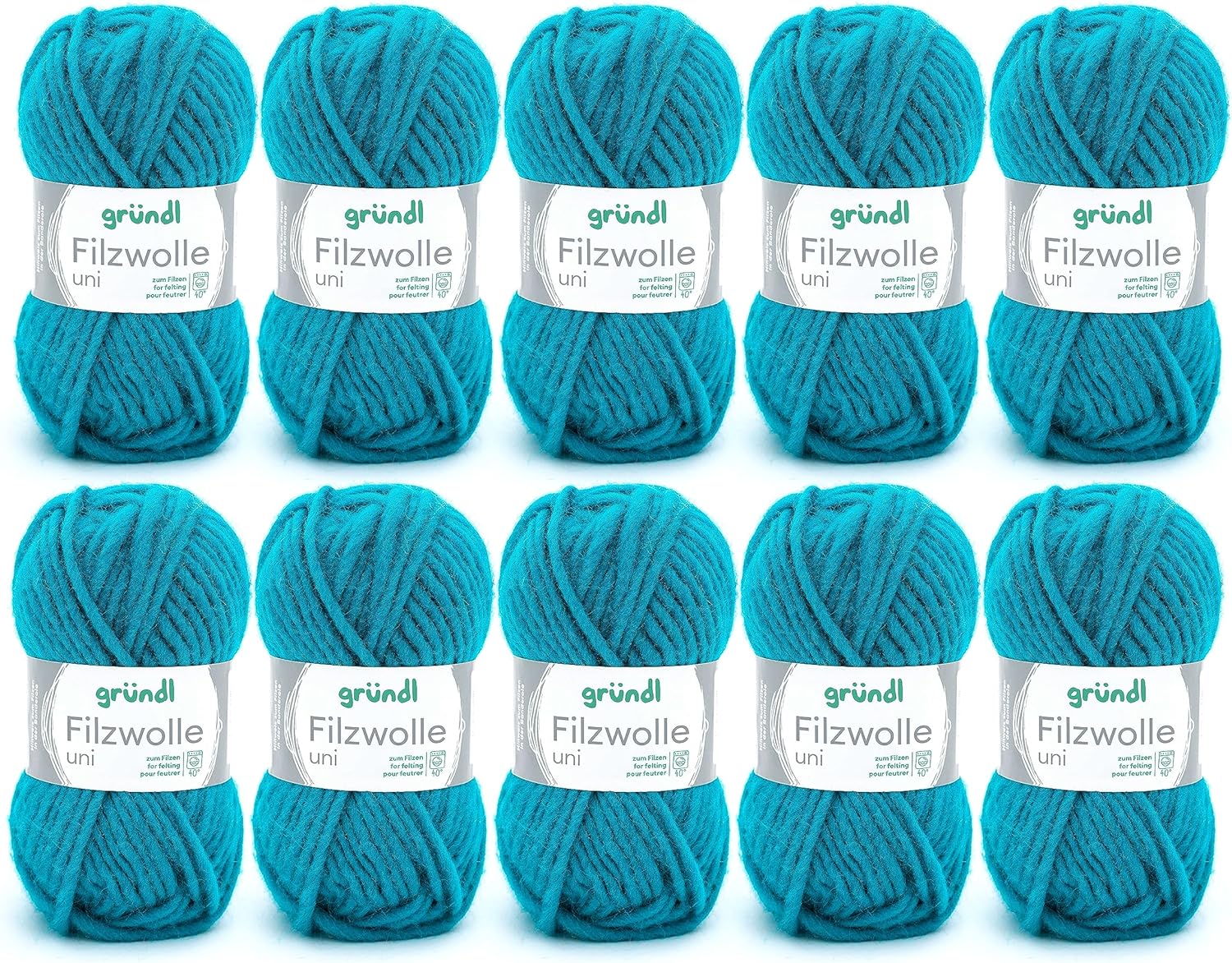 Gründl Filzwolle uni (Wolle zum Filzen, Stricken und Häkeln, Garn aus 100 % Schurwolle, 50 g / 50 m,
