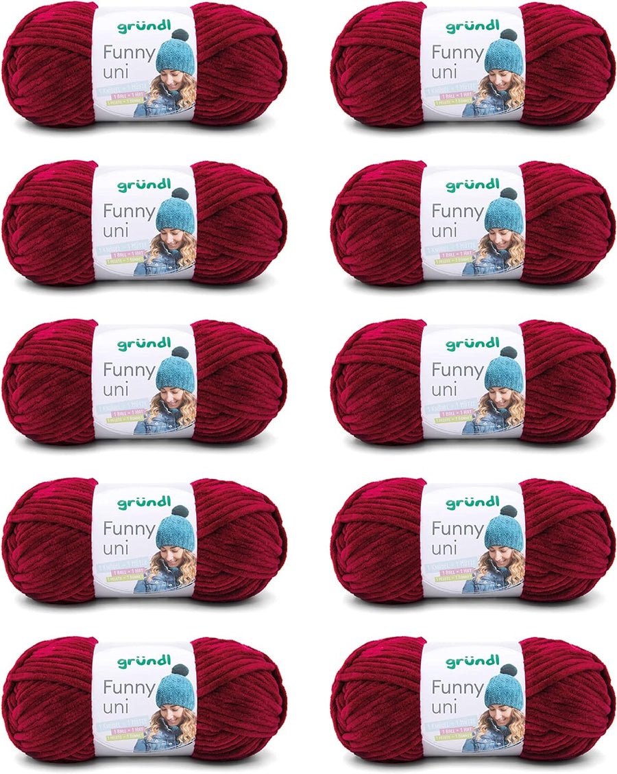 - LIEFERUMFANG & WEITERE EIGENSCHAFTEN: Gründl Funny uni Wolle, 10 x 100 g / 100 % Polyester / Maschenprobe: 11 M x 20 R = 10 x 10 cm / Materialverbrauch: Pullover (Gr. 38) = ca. 500 g