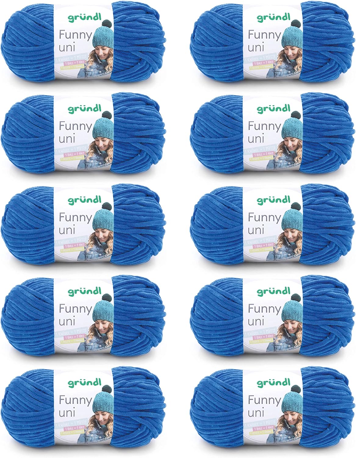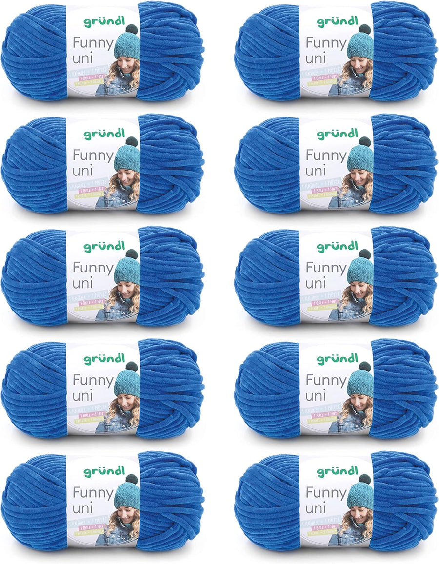 - LIEFERUMFANG & WEITERE EIGENSCHAFTEN: Gründl Funny uni Wolle, 10 x 100 g / 100 % Polyester / Maschenprobe: 11 M x 20 R = 10 x 10 cm / Materialverbrauch: Pullover (Gr. 38) = ca. 500 g