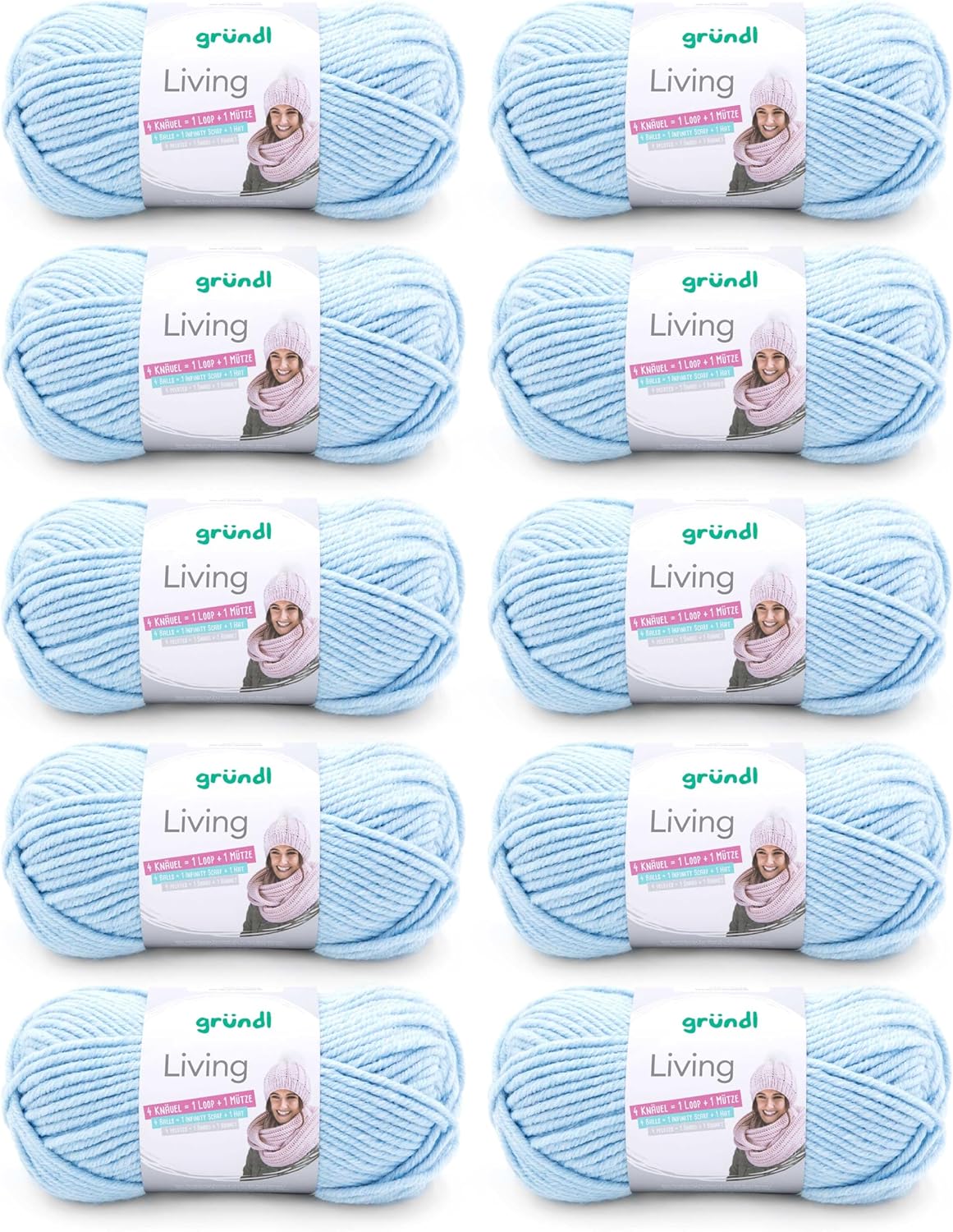 - LIEFERUMFANG & WEITERE EIGENSCHAFTEN: Gründl Living, 10 x 100 g / 80 % Polyacryl, 20 % Polyamid / Maschenprobe: 11 M x 16 R = 10 x 10 cm / Materialverbrauch: Pullover (Gr. 38) = ca. 800 g