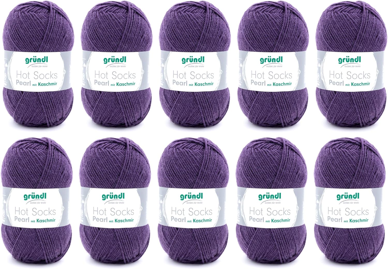 - LIEFERUMFANG & WEITERE EIGENSCHAFTEN: Gründl Hot Socks Pearl uni, 10 x 50 g / 75 % Merinowolle, 20 % Polyamid, 5 % Kaschmir / Maschenprobe: 30 M x 40 R = 10 x 10 cm / Materialverbrauch: Pullover (Gr. 38) = ca. 500 g, ein Paar Socken = ca. 100 g