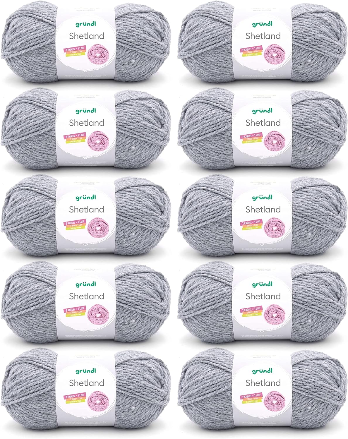 - LIEFERUMFANG & WEITERE EIGENSCHAFTEN: Gründl Shetland, 10 x 100 g / 80 % Polyacryl & 20 % Wolle / Maschenprobe: 14 M x 20 R = 10 x 10 cm / Materialverbrauch: Pullover (Gr. 38) = ca. 500 g