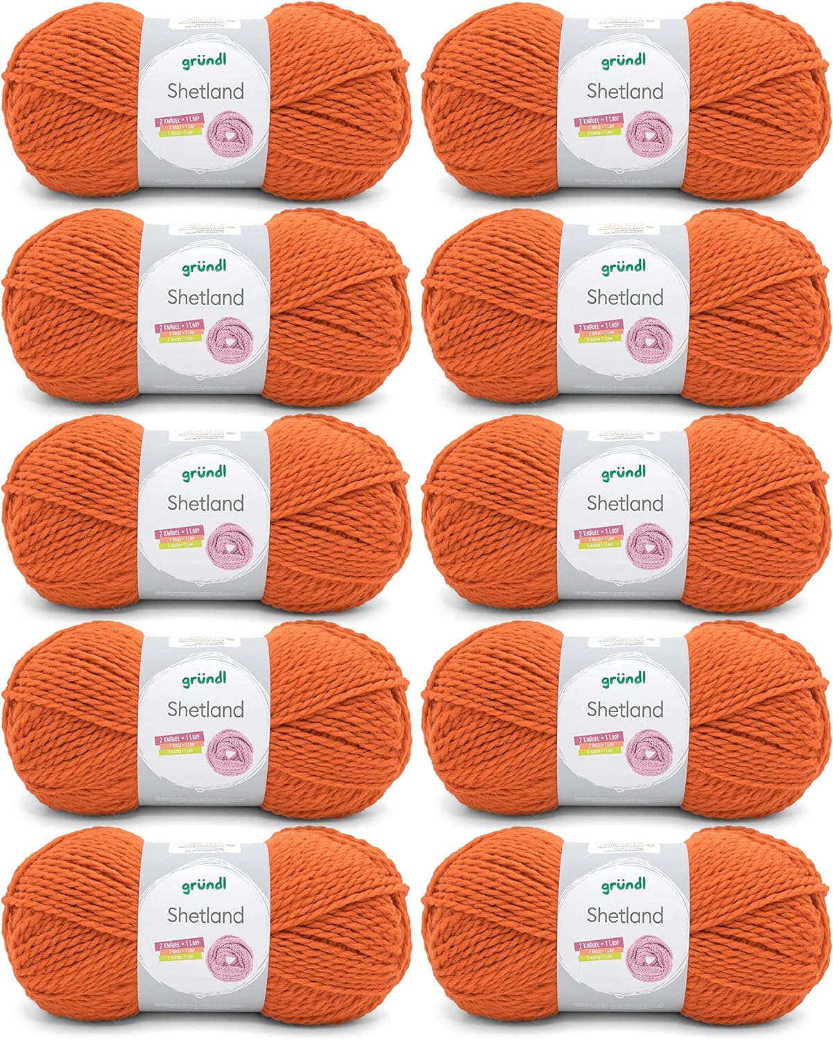 - LIEFERUMFANG & WEITERE EIGENSCHAFTEN: Gründl Shetland, 10 x 100 g / 80 % Polyacryl & 20 % Wolle / Maschenprobe: 14 M x 20 R = 10 x 10 cm / Materialverbrauch: Pullover (Gr. 38) = ca. 500 g