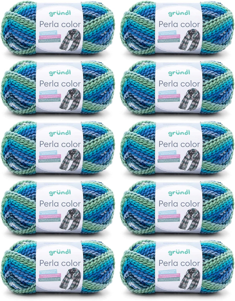 - EIN GARN MIT VIELEN MÖGLICHKEITEN: Durch grosse Nadeln (8 mm - 9 mm) ist mit dem voluminösen Perlgarn ein schneller Strick- und Häkelerfolg garantiert. Ob für kuschelige Mützen und Schals – auch für Kissen eignet sich das Farbverlaufsgarn perfekt.