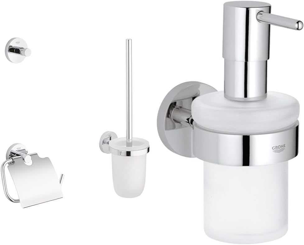 - Produkt 1: Bestehend aus: Toilettenbürstengarnitur (40 374 001), Bademantelhaken (40 364 001), WC-Papierhalter, mit Deckel (40 367 001)