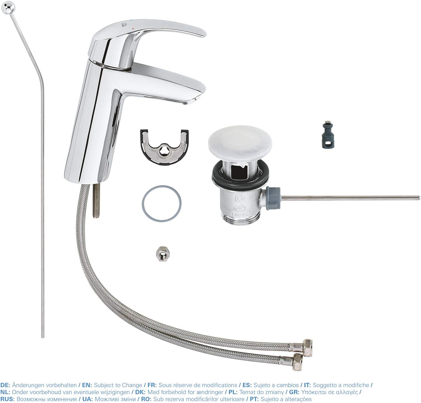 - Lieferumfang: Waschtischarmatur, Zugstange, Ablaufstopfen, Befestigungsmaterial, Bedienungsanleitung