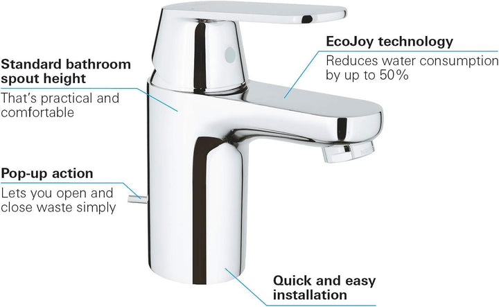 - Grohe EcoJoy: Sparfunktion für reduzierten Wasserverbrauch. Mit Grohe EcoJoy fliesst bis zu 50 % weniger Wasser durch die Armatur – und das bei 100 % Leistung