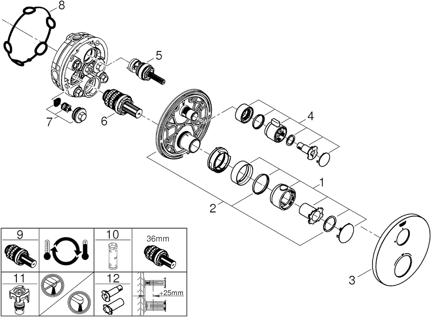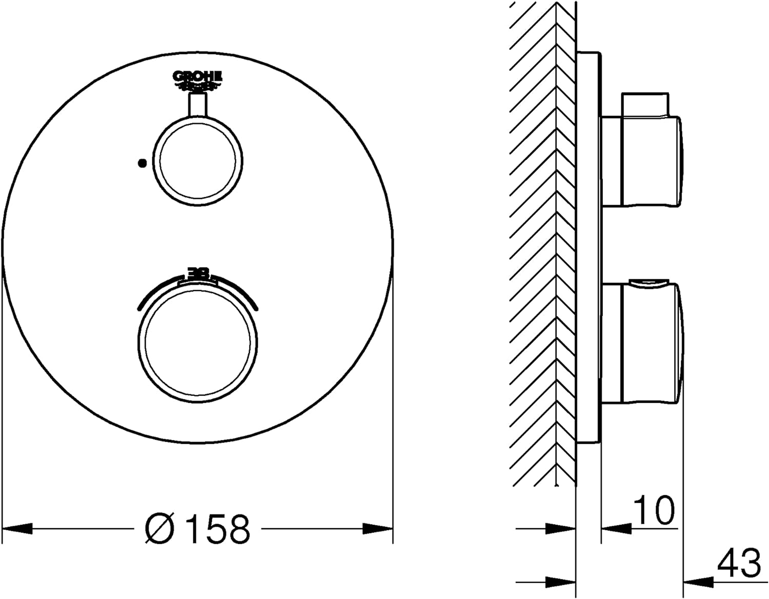 - GROHE SafeStop Plus Sicherheitssperre bei 38°C und zusätzlich optional einsetzbarer Temperaturendanschlag bei 43°C