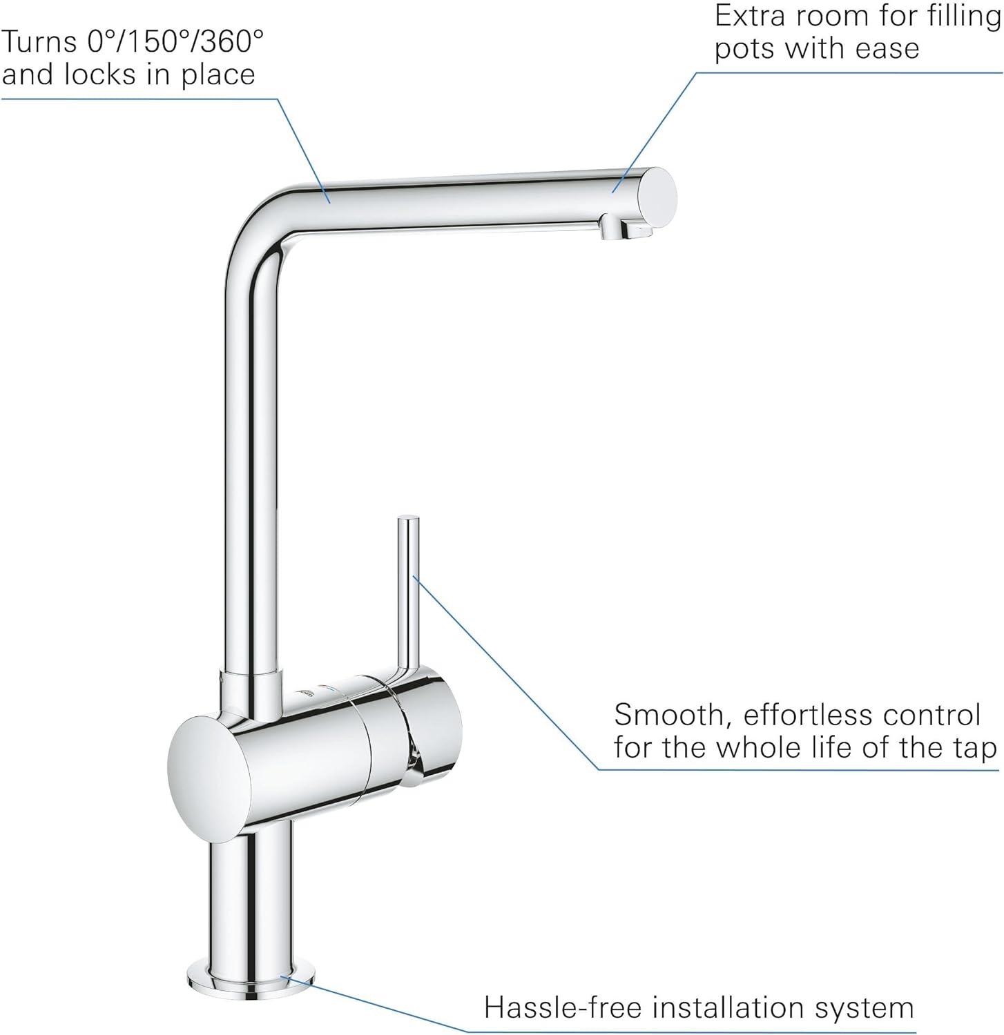 - Hoher Auslauf – zum einfachen Befüllen grosser Töpfe