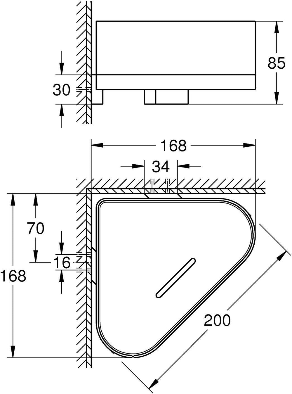 - Lieferumfang: GROHE Eck-Duschablage mit Halterung, Pflegehinweis, Montageset