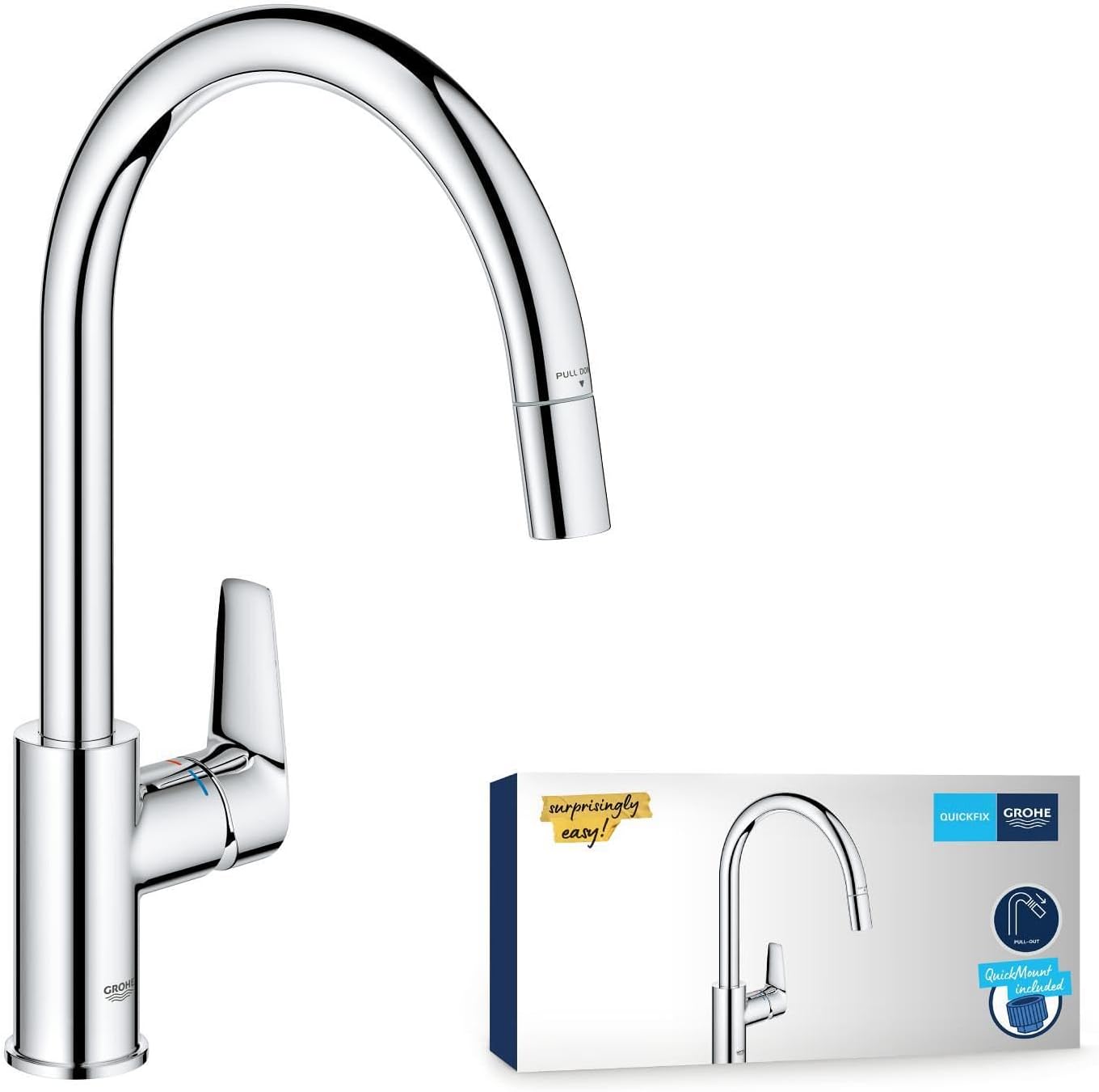 GROHE StartEdge - Einhand- Spültischarmatur (hoher Auslauf, herausziehbare Mousseurbrause, Schwenkbe