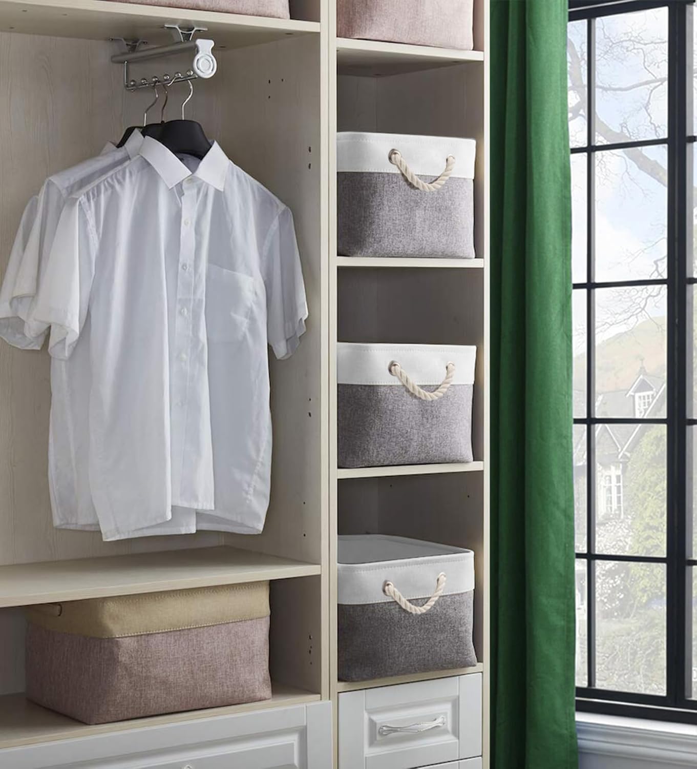 - Einfach zu bedienen: Starker Metallrahmen um die Oberseite hält die Korbform, doppelt geflochtene weiche Seilgriffe für einfaches Ein- und Ausschieben aus dem Regal, Schrank, oder Kleiderschrank.