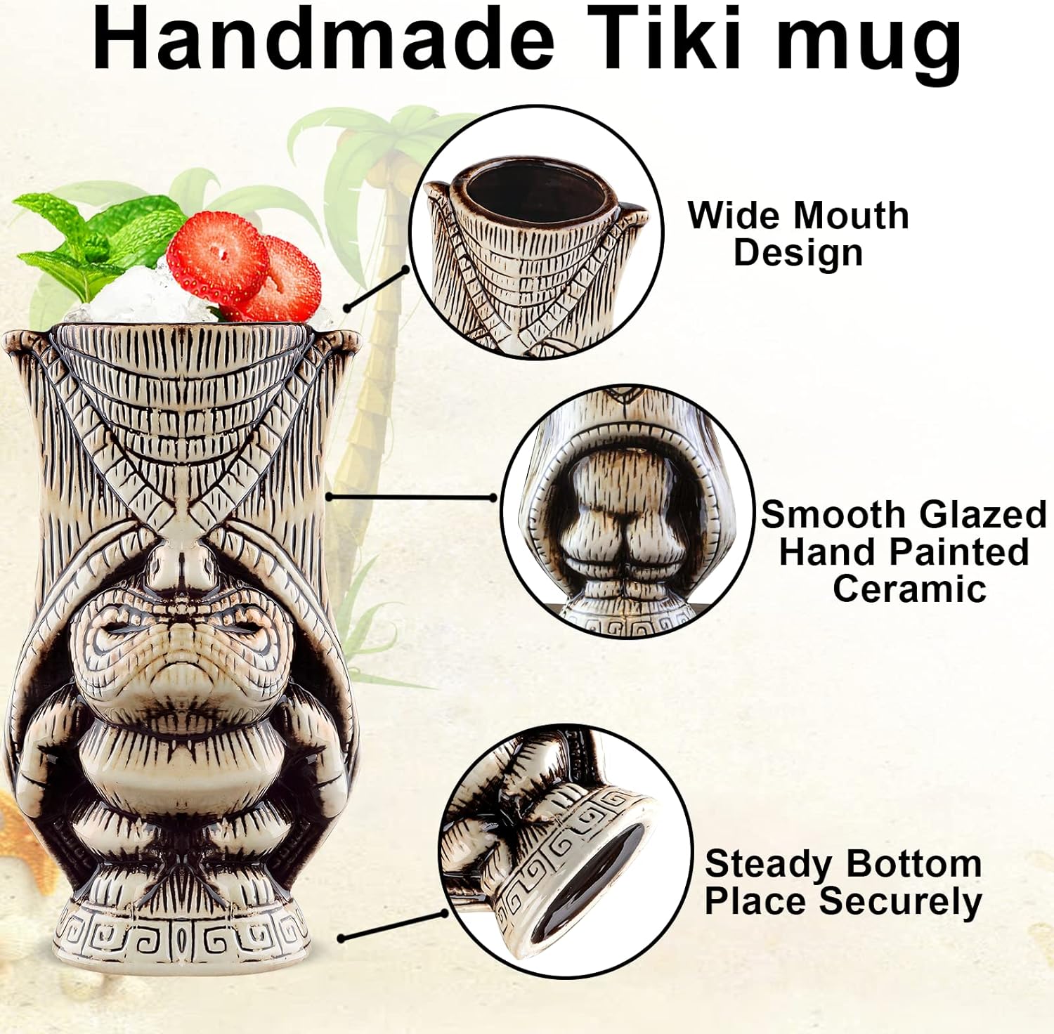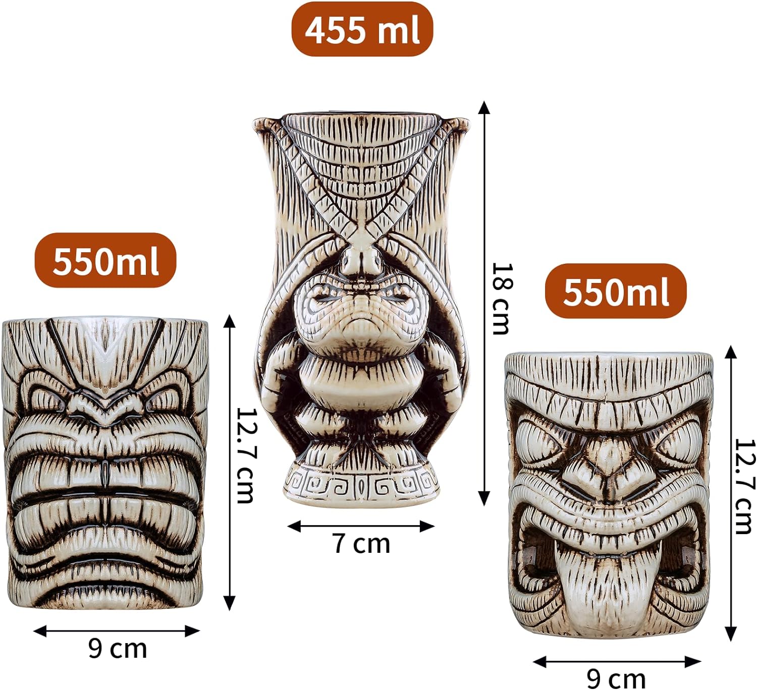 - Hervorragende Qualität: Hergestellt aus reiner Keramik. Unsere Tiki-Tassen sind hitzebeständig, langlebig und haben eine gute Stärke, um Flüssigkeiten unterschiedlicher Temperatur zu halten.