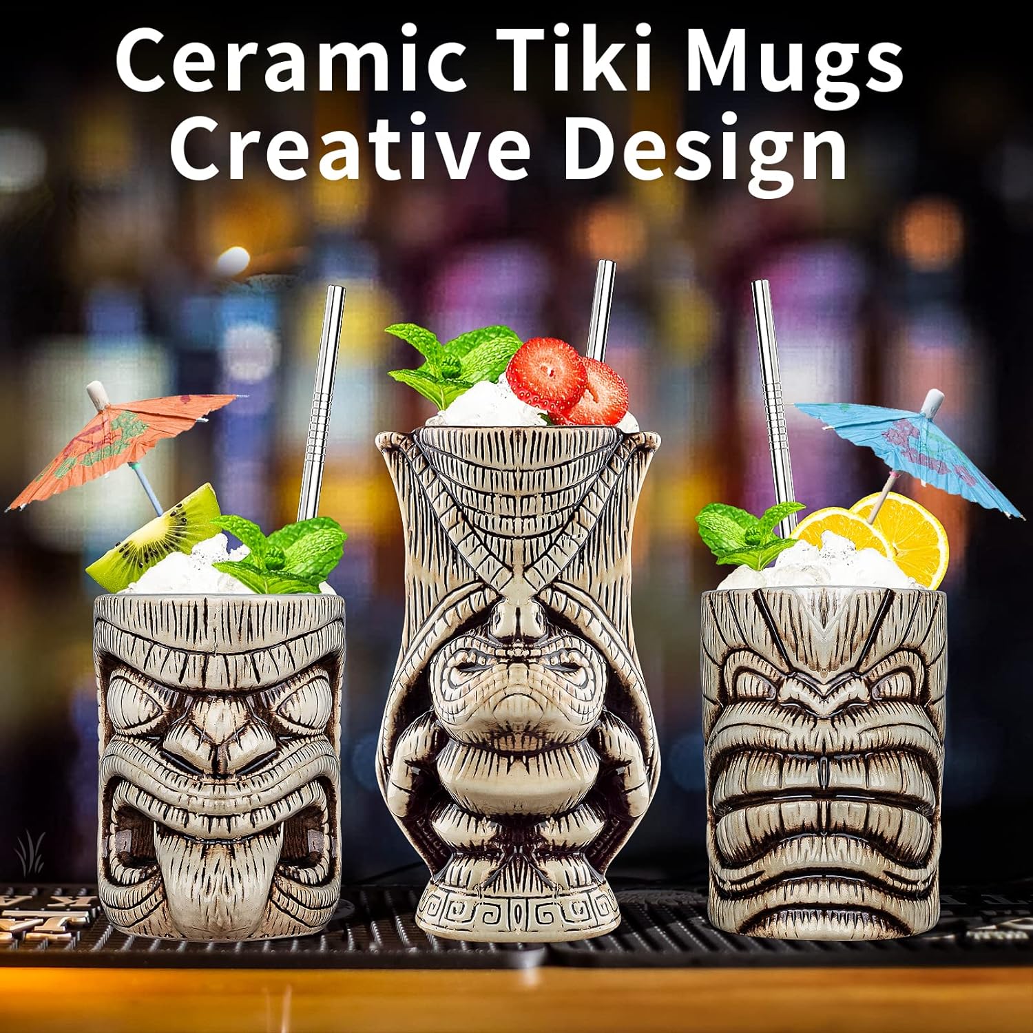 - Lustige Formen: Die Tiki-Tassen sind sorgfältig verarbeitet mit einzigartigen Details und verschiedenen Formen, ideal für eine tropische Strand-Mottoparty, polynesische Tiki-Bar, Restaurant im Tiki-Stil