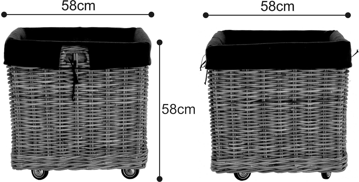 - Breite ca. 58 cm / Tiefe ca. 58 cm / Höhe ca. 58 cm (inkl. Rollen) / Innen ca. 50x50 cm