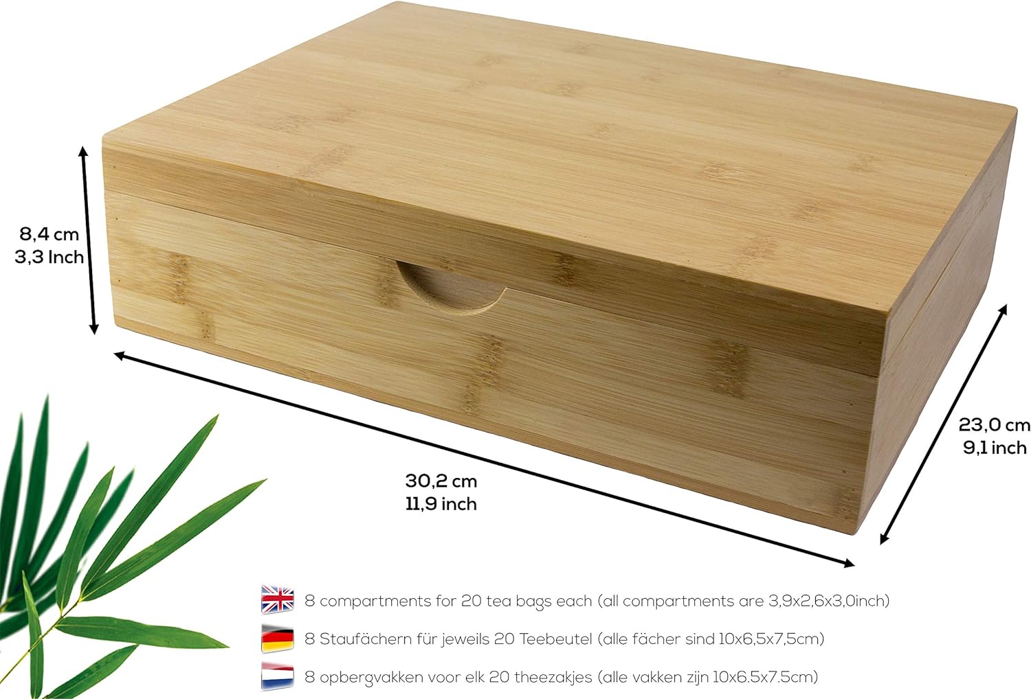 - ✅ Hohe Qualität: Teekiste aus umweltfreundlichem ECO Bambus (kein Kunststoff) in Holzoptik mit Rutschfeste Füsse.