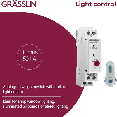 - Analoger Dämmerungsschalter mit Aufbau-Lichtsensor, 1-Kanal; Schutzklasse II; Sensor III