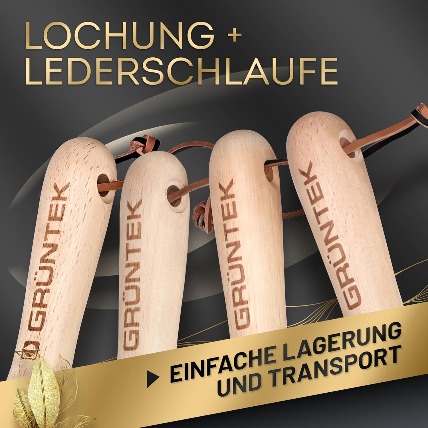 - GRÜNTEK 4-tlg Gartenwerkzeug-Set "Black Forest Edition", Premium Gartengeräte aus rostfreiem Edelstahl mit 1,8 mm Dicke und langlebigen, rutschfesten Holzgriffen aus Eschenholz Hartholz; Lieferumfang: Garten-Kelle, Gabel, Multi-Unkrautjäter,