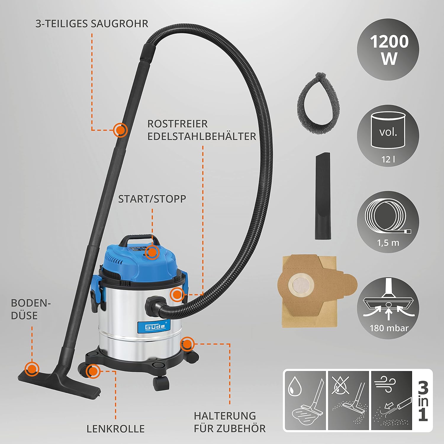 - LEISTUNG - Angetrieben von einem leistungsstarken 1200 W Elektromotor erzeugt er einen max. Unterdruck von 180 mbar für eine starke Saugleistung. Der rostfreie 12 Liter Edelstahlbehälter ist stabil gefertigt und gewährleistet lange Saugarbeiten.