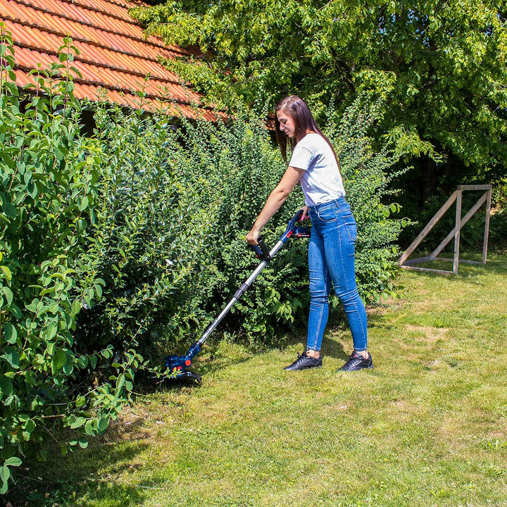 - ✔ Durch den teleskopierbaren Führungsholm und den stufenlos verstellbaren Zusatzhandgriff lässt sich der Rasentrimmer perfekt auf Ihre Bedürfnisse einstellen.
