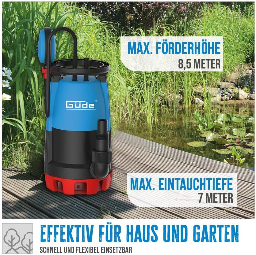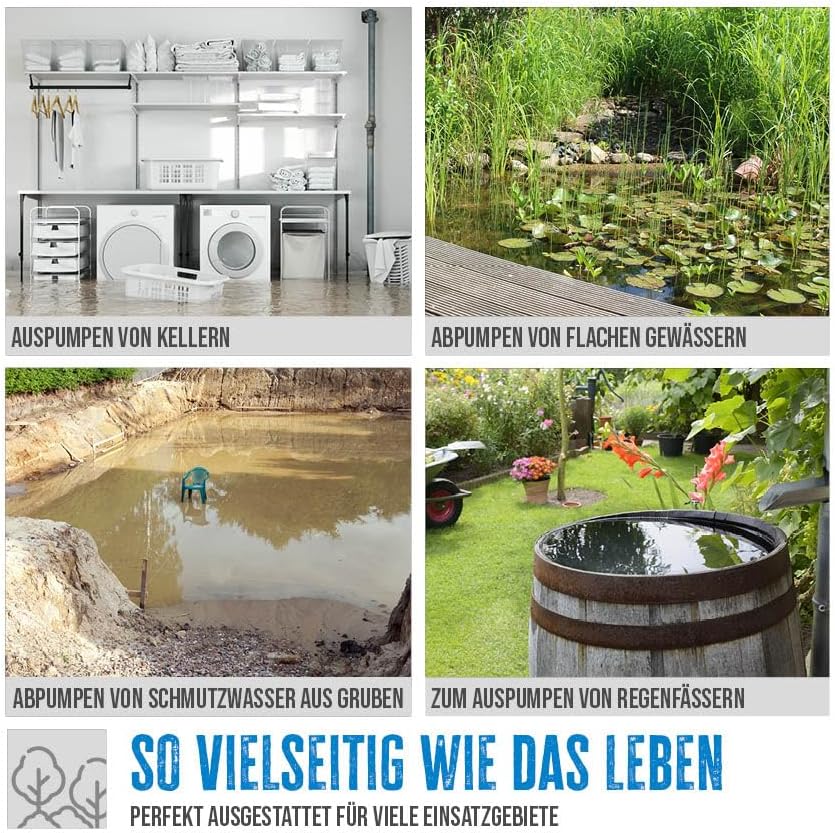 - Die Pumpe saugt das Wasser bis auf wenige Millimeter ab, ideal geeignet für Klarwasser und Schmutzwasser