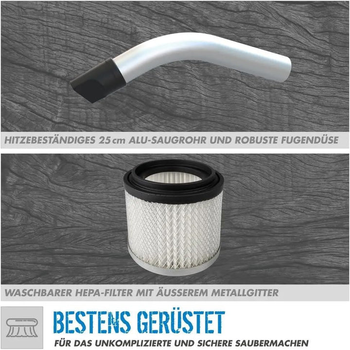 - HITZEBESTÄNDIG: 25 cm langes, hitzebeständiges Aluminium-Saugrohr ermöglicht sicheres und unkompliziertes Aufsaugen von Asche, selbst in schwer zugänglichen Bereichen.