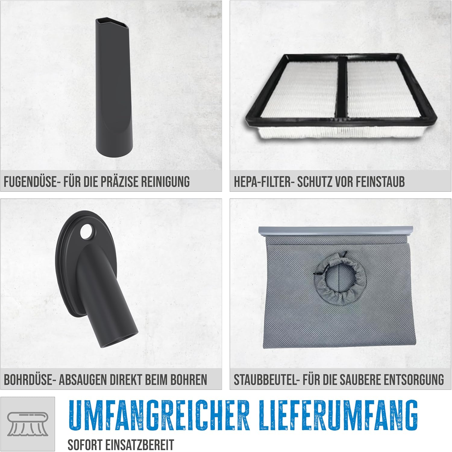 - FÜR HANDWERKER GEMACHT – Mit Gerätesteckdose und Einschaltautomatik lassen sich Elektrowerkzeuge direkt anschliessen; Staub wird beim Bohren, Schleifen oder Sägen direkt abgesaugt – für ein sauberes und sicheres Arbeitsumfeld
