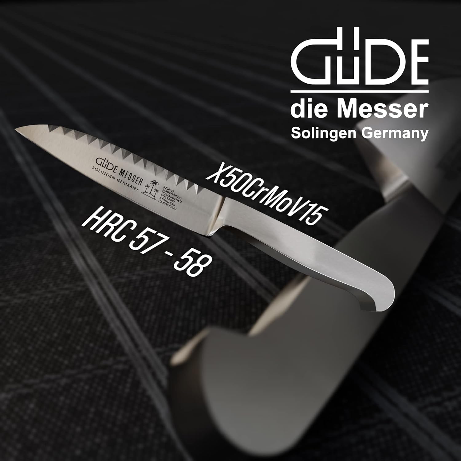 - Die KAPPA Serie von GÜDE ist im wahrsten Sinne des Wortes, aus einem Stück Stahl geschmiedet worden. Kein Einsatz von weiteren Komponenten, nur ein Stück Stahl. Noch spürbarer und näher, kann die Schmiedekunst aus Solingen nicht gebracht werden