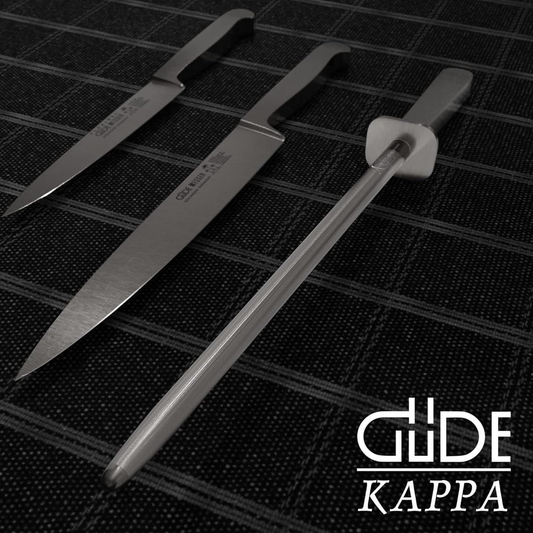 - Die KAPPA Serie von GÜDE ist im wahrsten Sinne des Wortes, aus einem Stück Stahl geschmiedet worden. Kein Einsatz von weiteren Komponenten, nur ein Stück Stahl. Noch spürbarer und näher, kann die Schmiedekunst aus Solingen nicht gebracht werden