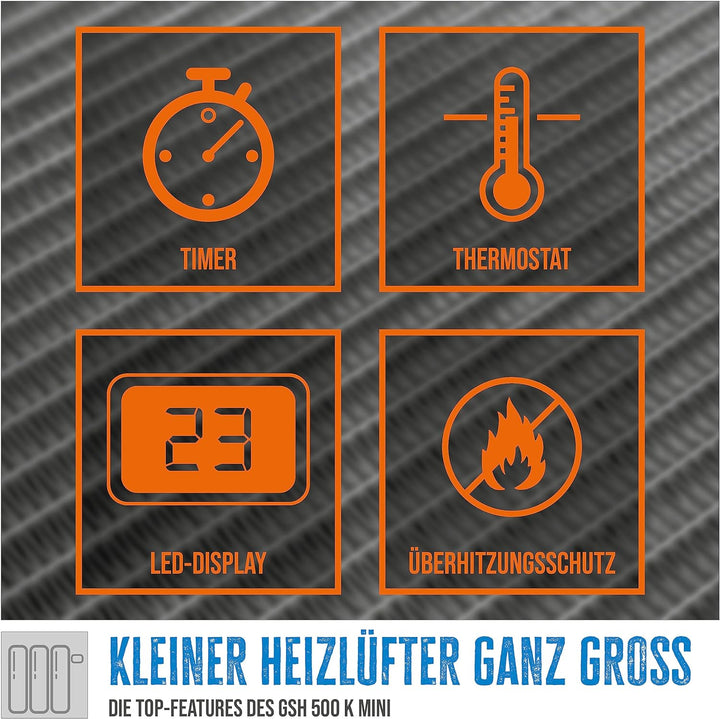 - KOMPAKT UND LEISTUNGSSTARK: Der Güde Steckdosen-Heizlüfter GSH 500 K mini ist ein hochwertiger, kompakter Heizlüfter, der direkt in die Wandsteckdose gesteckt wird. Ideal für kleine Räume oder beim Reisen.