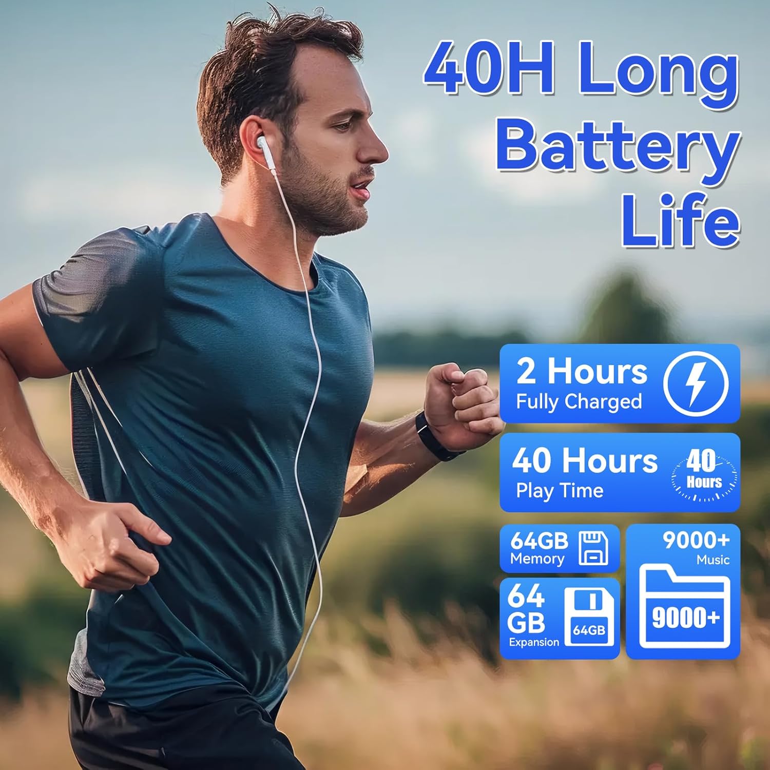 - 【Lange Akkulaufzeit】Dieser Bluetooth MP3-Player mit bis zu 40 Stunden hochwertiger verlustfreier Musik und schneller 2-Stunden-Aufladung, mit einem Gewicht von nur 85 Gramm, sein kompaktes und leichtes Design, ist Ihr perfekter musikalischer