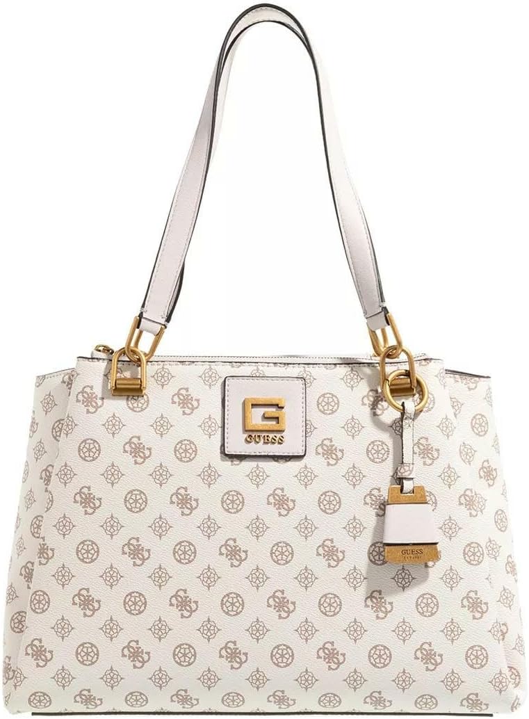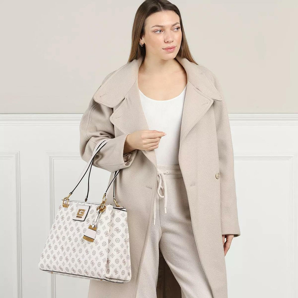 PRODUKTBESCHREIBUNGEN Pflegeleichte Oberfläche aus genarbtem Kunstleder in Creme für einen unempfindlichen Charakter. Innenfutter aus praktischem, beigem Textil mit Markenlogo. Besonders stilvoll wirken die goldfarbenen Metalldetails. Verfügt über einen edlen und akzentuierten Logo-Anhänger. Zwei Henkel aus robustem Kunstleder für besseren Halt beim Tragen (ca. 55 cm). Schliessen mittels eines modernen Magnetknopfes. Gegenstände lassen sich flexibel und unkompliziert in einem Hauptfach verstauen. Fünf weitere Innenfächer sorgen für Ordnung und separaten Schutz. Ein zusätzliches Aussenfach ermöglicht einen schnellen Zugriff auf Kleinigkeiten. Masse (B x H x T): 37 cm x 26 cm x 14 cm. Gewicht: 1.080 g. Mehr