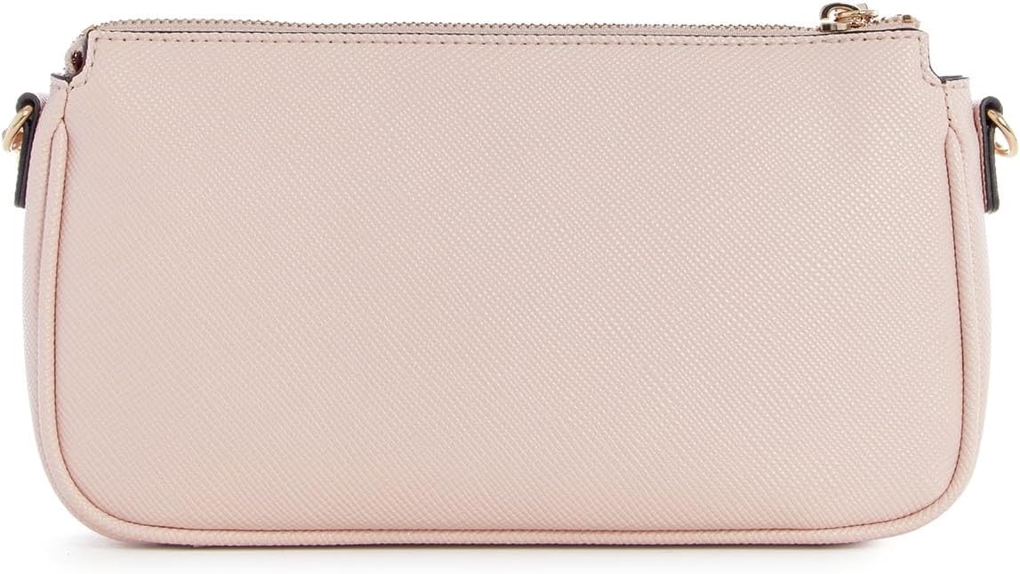 PRODUKTBESCHREIBUNGEN Doppel -Umhängetasche in Saffiano PU mit automatischen Oberflächen und Hardware in poliertem Gold