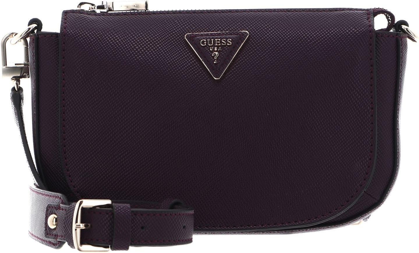 PRODUKTBESCHREIBUNGEN GUESS Umhängetasche in schlichter Eleganz Daten Umhängetasche: o Masse: Breite ca. 22 cm, Höhe ca. 13 cm, Tiefe ca. 3,5 cm o Gewicht: ca. 430 g o Farbe: Plum (violett) o 1 Schulterriemen abnehmbar, verstellbar: ca. 108 cm - 120 cm o Material: Aussen 100% Polyurethan, innen 80% Polyester, 20% Baumwolle o Lieferumfang: GUESS Umhängetasche mit Etikett, 1 x Schulterriemen Ausstattung Umhängetasche: o Umhängetasche wird mit Zipper geschlossen o Im Hauptfach 3 Einschubfächer für Kreditkarten, EC Karten, Visitenkarten etc. und 1 Einschubfach o Auf der Rückseite 1 Zipperfach o Mit verstärktem Boden ausgestattet o Besitzt geräumiges Hauptfach o Ist standfest o Das GUESS Logo ist gut sichtbar eingearbeitet GUESS Brynlee Mini Crossbody Bag - Der Eyecatcher des Abends Mit dieser schicken GUESS Tasche sind Sie unterwegs ein absoluter Hingucker. Am Abend, beim Feiern oder auch einfach mal so, an dieser Tasche werden Sie jeden Augenblick des Tages Freude haben. Im Inneren der Mini Crossbody Bag haben Sie ausreichend Platz, um all Ihre wichtigen persönlichen Dinge und Karten, die Sie unterwegs benötigen, verräumen zu können. Das elegante Design der GUESS Brynlee Mini Crossbody Bag Umhängetasche wird mit Sicherheit einige Blicke auf sich ziehen. Überzeugen Sie alle mit Ihrem Gespür für Mode und Trend mit dieser GUESS Tasche.