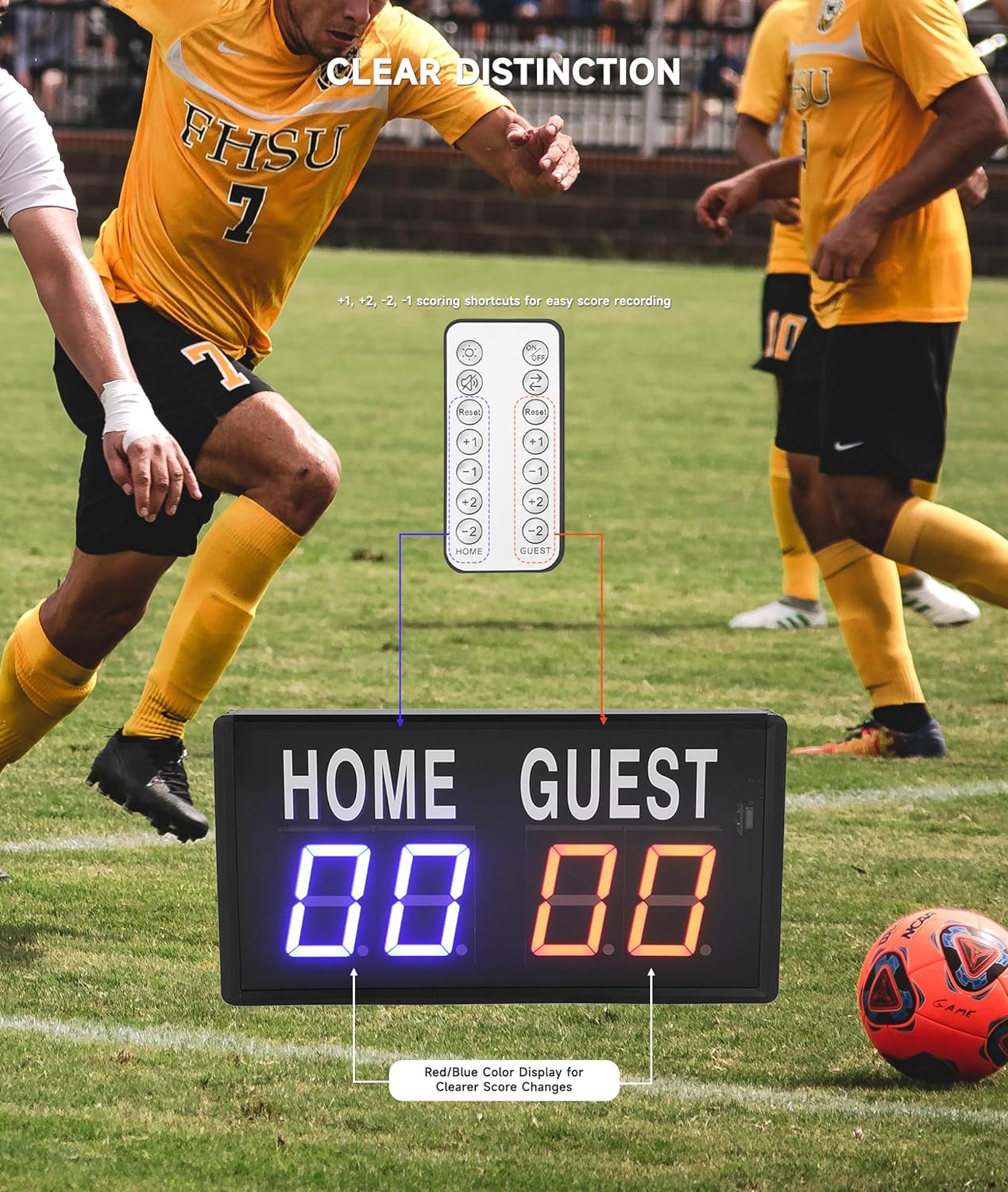 - MIT SCHALTTASTEN: Die Fernbedienung dieser tragbaren Anzeigetafel ist mit den Punktekürzeln +1, +2, -2, -1 ausgestattet, und die beiden Seiten des Spiels werden durch rote und blaue Ziffernanzeigen unterschieden, um die Änderungen des Spielstands