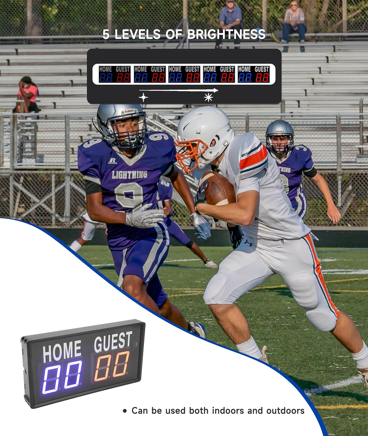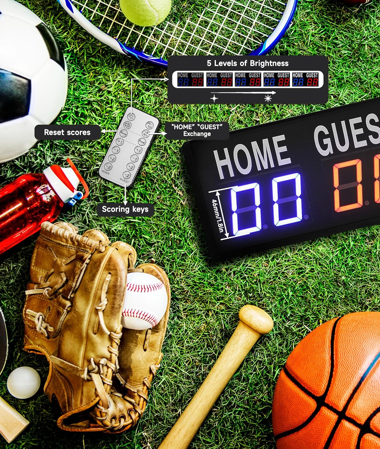 - EINSTELLBARE HELLIGKEIT: Diese digitale Anzeigetafel kann per Fernbedienung mit 5 Helligkeitsstufen und verschiedenen Funktionen eingestellt und bedient werden. Der Fernbedienungsabstand von 30 Fuss ist perfekt für Basketball, Tischtennis, Tennis,